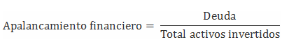 Cuando el apalancamiento financiero es resultado de deuda se suele utilizar esta otra fórmula para calcular el porcentaje de apalancamiento que estamos utilizando: