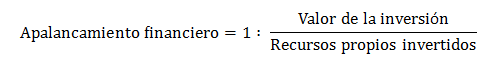 Por lo tanto la fórmula para calcular el apalancamiento financiero de una operación será: